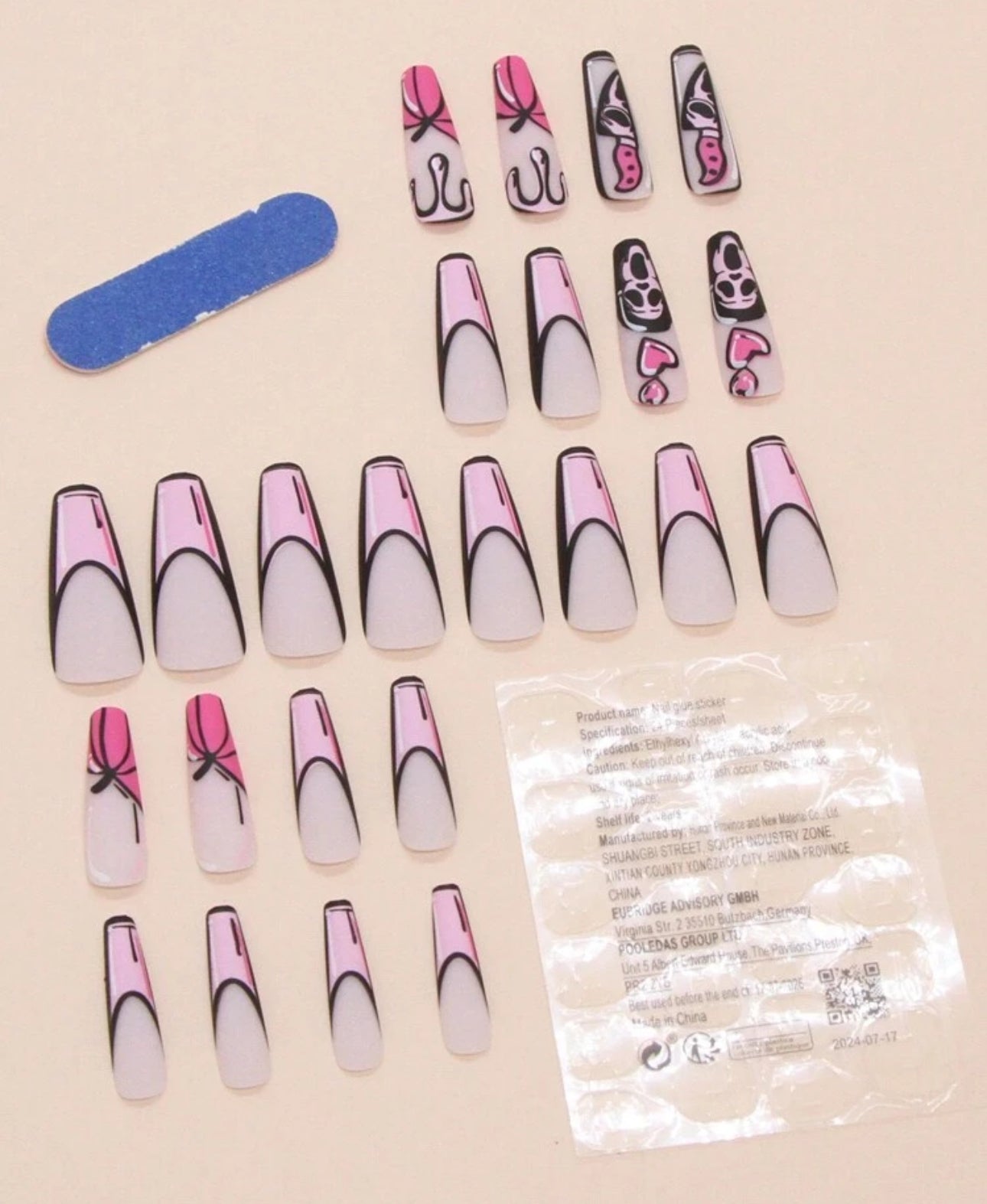 Comes with gel stick ons , filer , acrylic glue and a cuticle pusher💅🏽